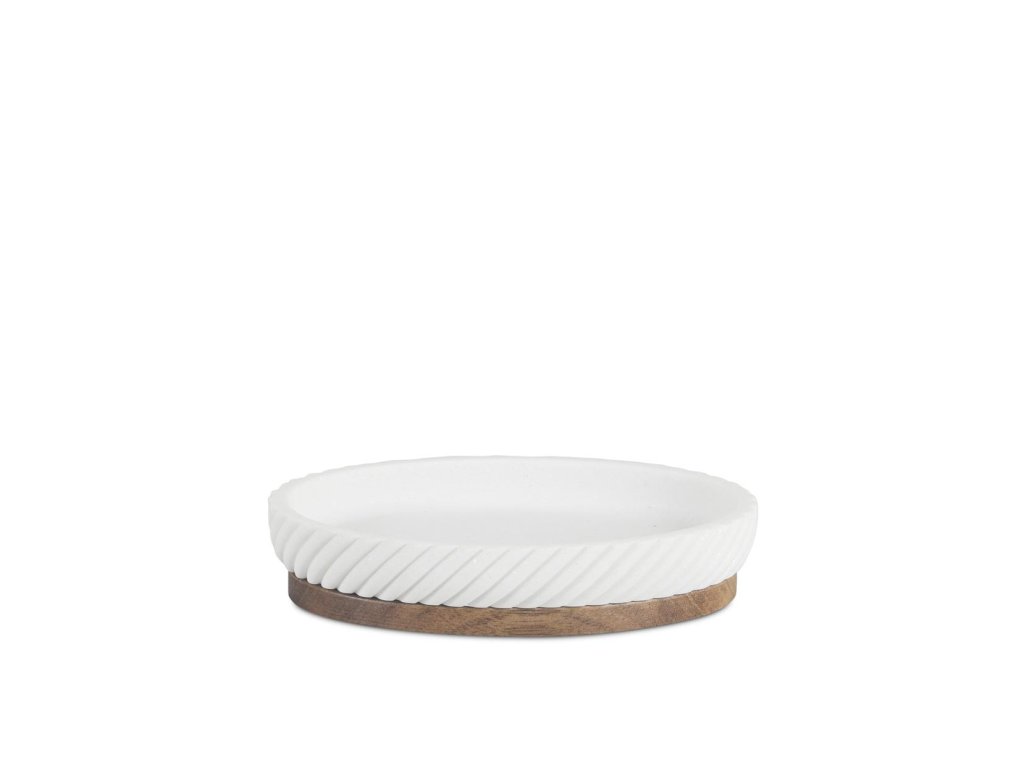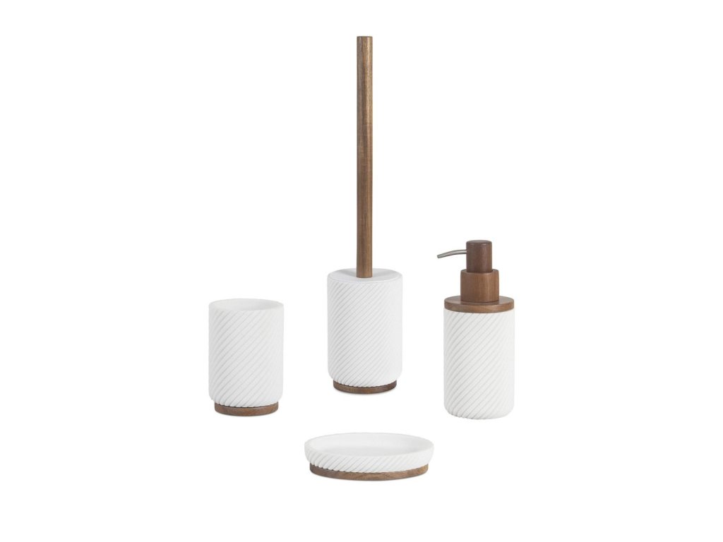 Jemná kombinace matné bílé barvy a přírodního akáciového dřeva dodává této mýdlence ušlechtilý a harmonický vzhled. Díky diagonálnímu reliéfu působí moderně, přesto však zachovává příjemný přírodní charakter, který snadno zapadne do různých stylů koupelen – od minimalistických po skandinávské či přírodně laděné.