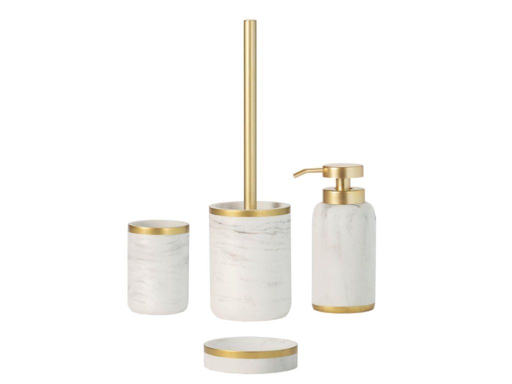 Bílý stojan na zubní kartáčky mramorový efekt se zlatou lištou