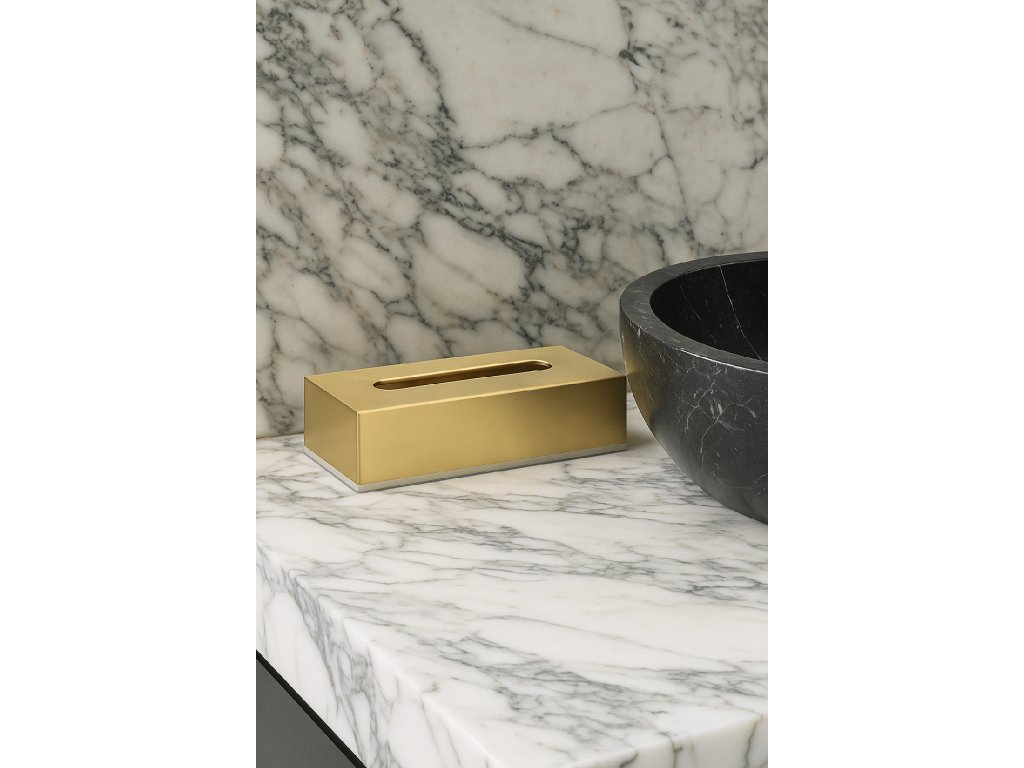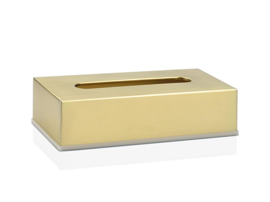 Stylový a praktický doplněk, který pozvedne jakýkoli interiér. Tento kovový box na papírové kapesníčky v luxusním zlatém provedení je ideální nejen do koupelny, ale i na jídelní stůl, pracovní plochu nebo noční stolek v ložnici. Minimalistický design se hodí jak do moderních, tak i klasických prostor.