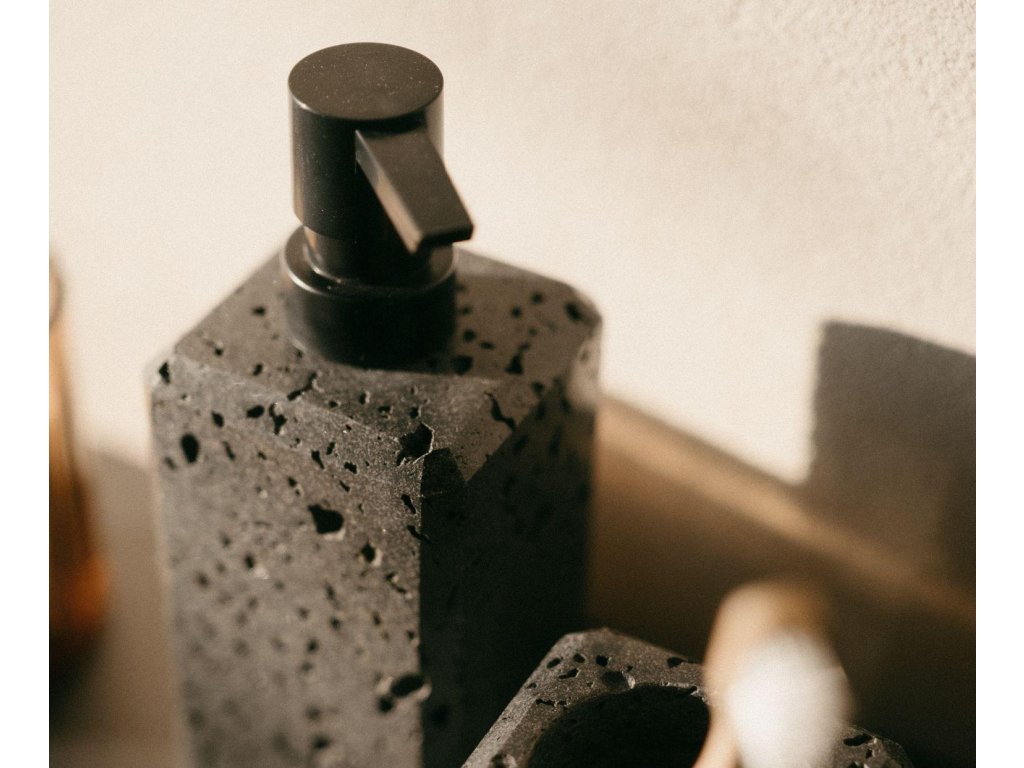 Robustní tělo z kamene doplňuje decentní pumpička, která ladí s minimalistickým designem celku. Díky své váze dávkovač pevně stojí na místě a je tak ideální nejen do koupelny, ale i do kuchyně, na toaletu či do wellness prostoru.
