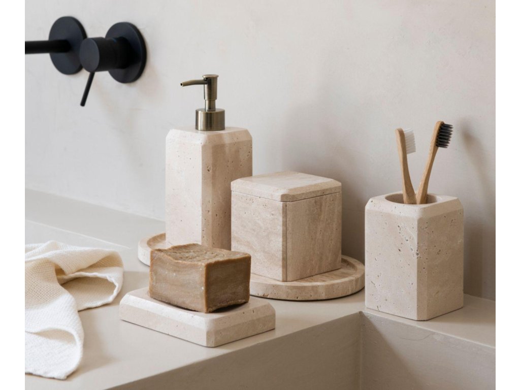 SOFISTIKOVANÝ DÁVKOVAČ MÝDLA ZE SVĚTLÉHO TRAVENTINU