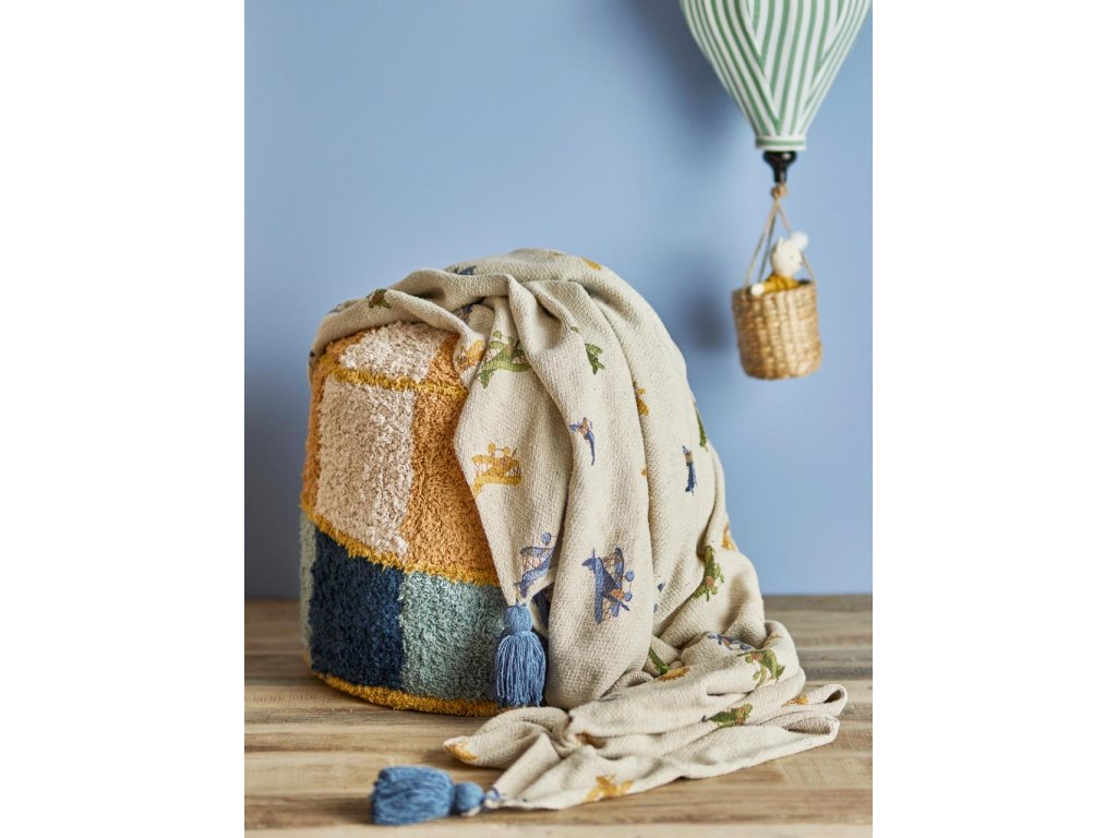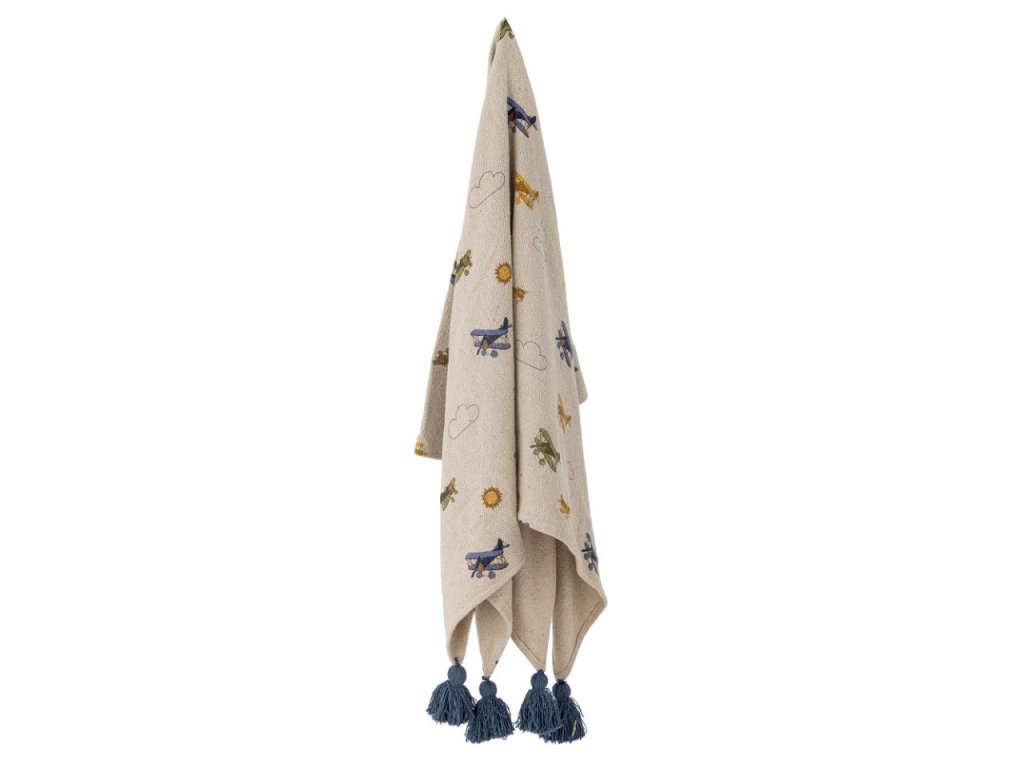 Dětská deka Plane od Bloomingville MINI je kousek, který si okamžitě získá srdce malých snílků i jejich rodičů. Už na první pohled zaujme svým jemným designem, který kombinuje hravé motivy letadýlek a obláčků s decentními barvami. Každý roh deky zdobí modrý střapec, jenž jí dodává originální charakter a dělá z ní nejen praktickou pomůcku, ale také stylový dekorativní prvek do každého dětského pokoje.