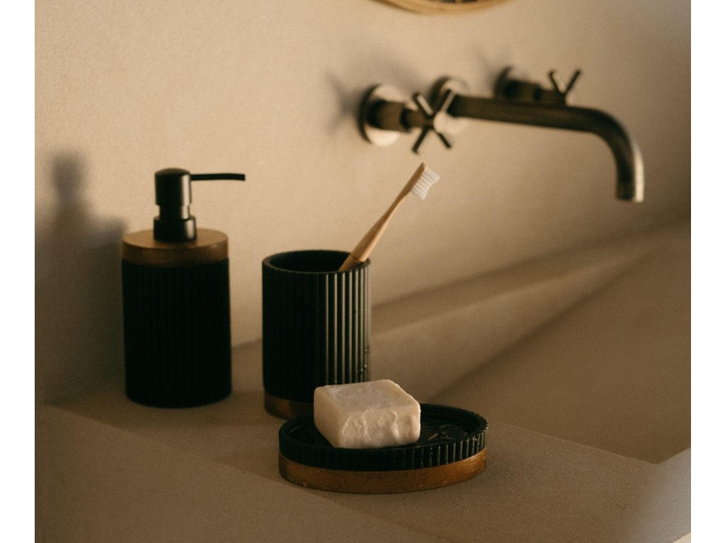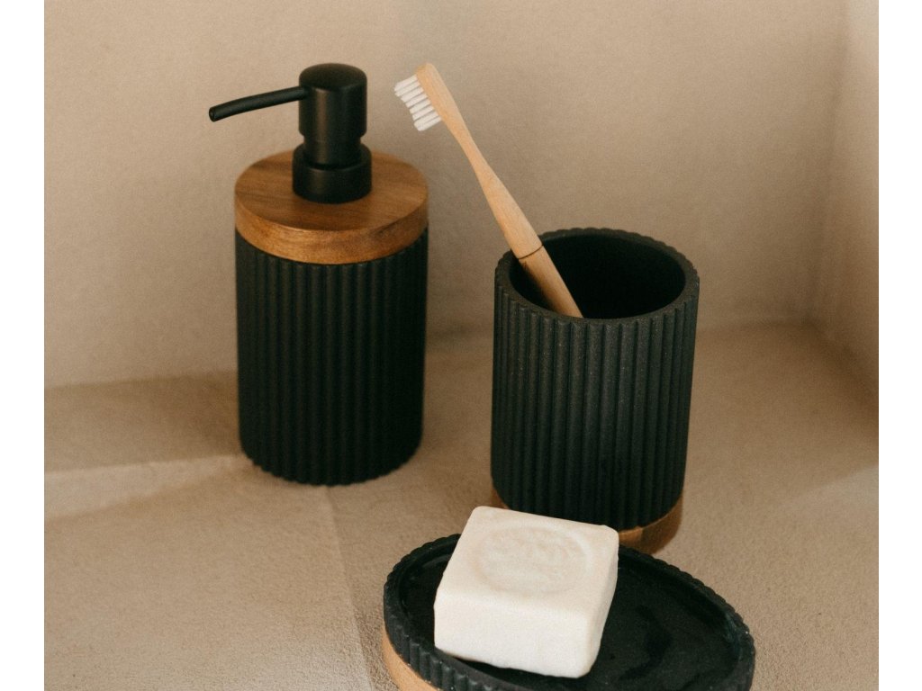 ČERNÁ DÓZA NA ZUBNÍ KARTÁČKY S DETAILY Z PŘÍRODNÍHO DŘEVA