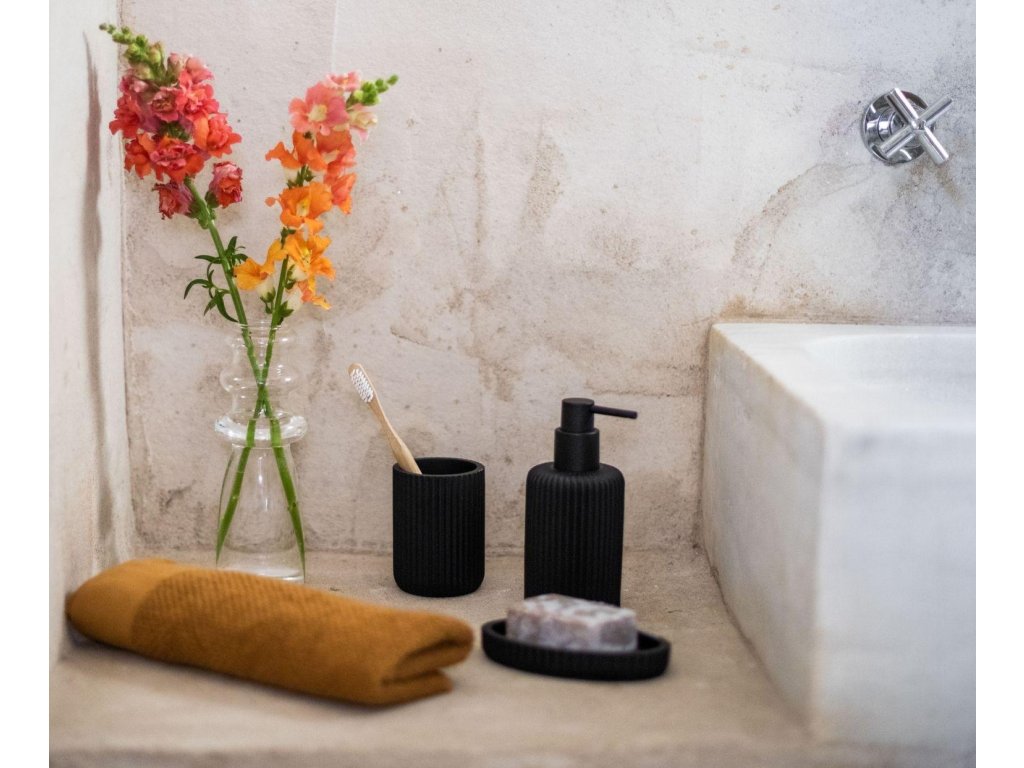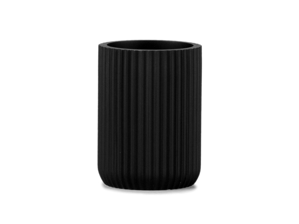 Elegantní a zároveň nadčasový doplněk, který pozvedne každou moderní koupelnu. Tento designový kelímek na zubní kartáčky je vyroben z kvalitního polyresinu – mimořádně odolného kompozitního materiálu, který spojuje pevnost, dlouhou životnost a příjemnou haptiku. Povrch je matný, hebký na dotek a díky jemnému vertikálnímu žebrování působí strukturovaně a velmi esteticky.