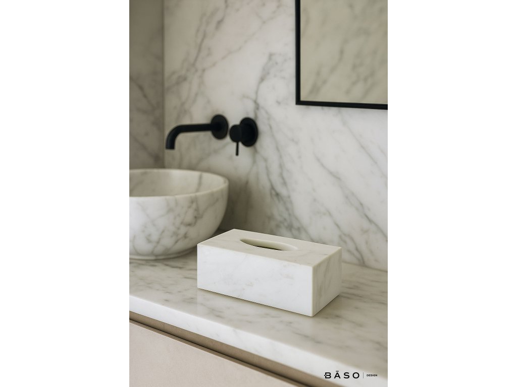 Box však skvěle vynikne i mimo koupelnu – položte jej například na konferenční stolek v obývacím pokoji, noční stolek v ložnici nebo pracovní stůl, kde kromě praktické funkce plní i roli designového akcentu. Bílý mramor vnáší do prostoru lehkost, čistotu a nadčasovost, která se snadno kombinuje s moderním, klasickým i skandinávským stylem.
