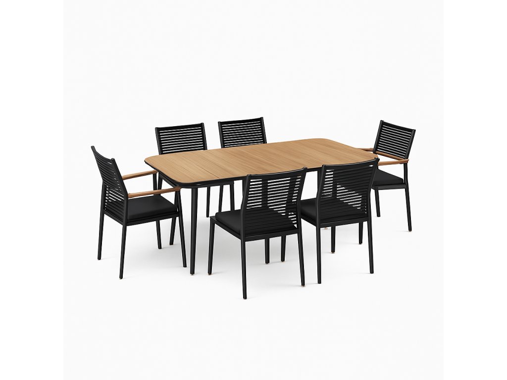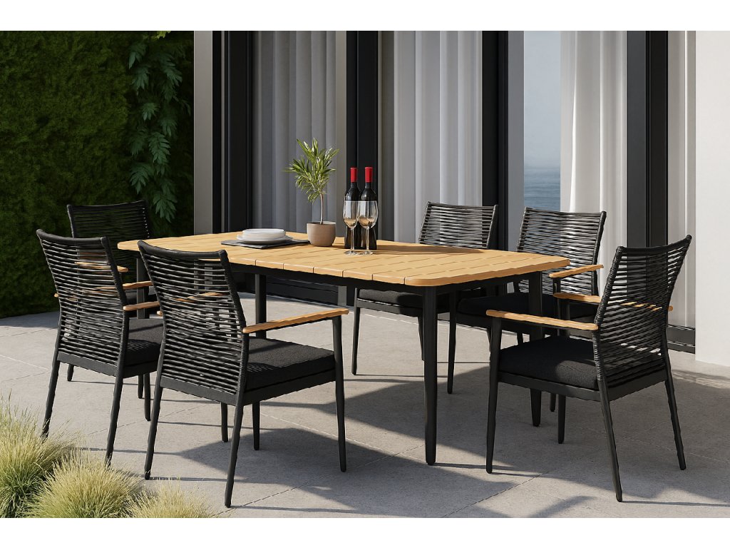Luxusní jídelní stůl Paris je dokonalým spojením moderní elegance, funkčnosti a odolnosti, což z něj činí ideální volbu pro venkovní stolování. Jeho pevná hliníková konstrukce poskytuje lehkost, stabilitu a dlouhou životnost, zatímco teaková deska přináší nejen vizuální teplo, ale i příjemný hmatový komfort.