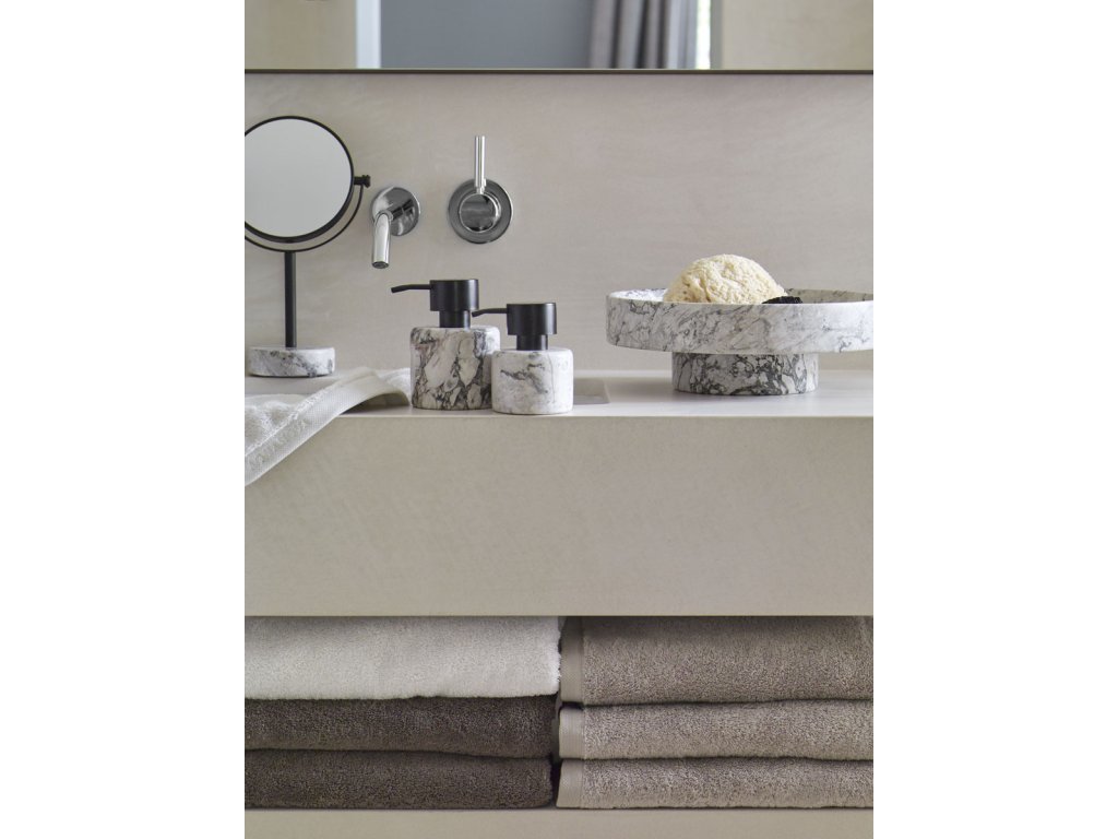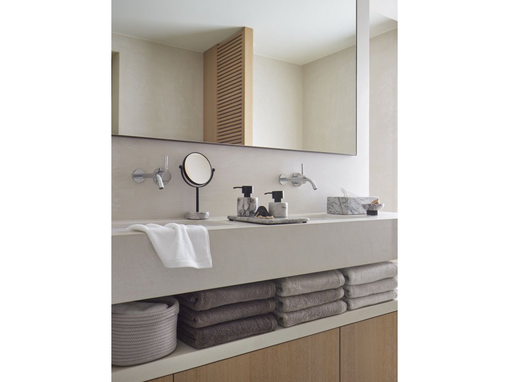 Skvěle ladí s koupelnovými doplňky z mramoru – boxem na kapesníčky, dávkovačem mýdla nebo kelímkem na kartáčky. Ideálně z modelové řady Nero. Tento mramorový dekor se hodí jak ke zlatým, tak černým doplňkům.