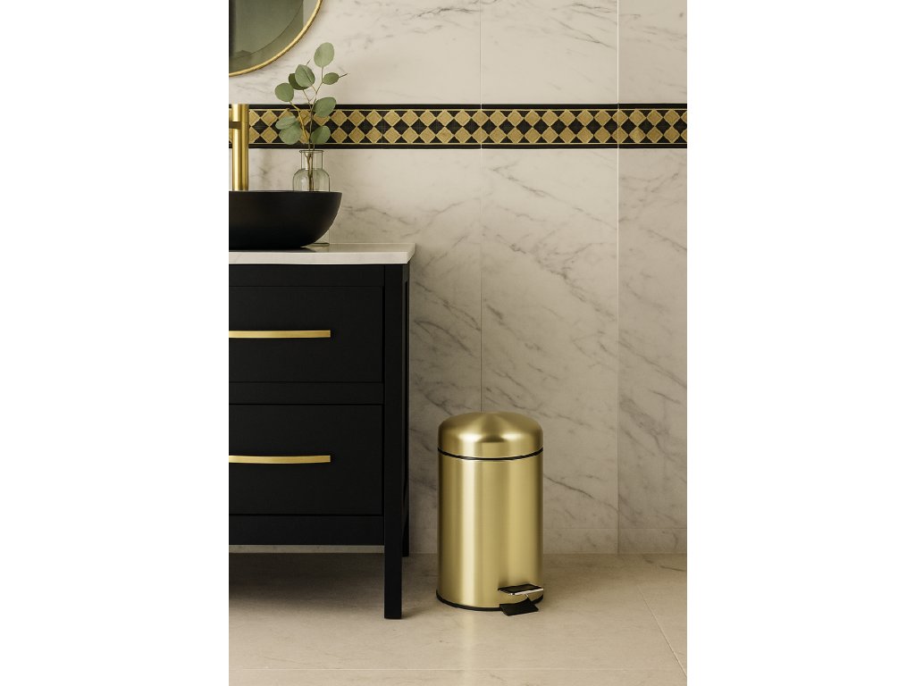 Styl a praktičnost v jednom. Tento elegantní koupelnový koš v matném zlatém provedení dodá vaší koupelně nádech luxusu a čistoty. Díky pedálovému mechanismu zajistí hygienické otevírání bez nutnosti dotyku rukou. Ideální velikost pro každodenní použití v koupelně, na toaletě nebo v ložnici.