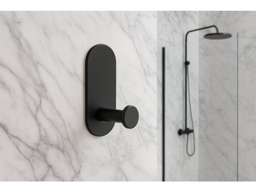 - Minimalistický design – jednoduchý tvar s oválnou základnou a kulatým zakončením háčku.