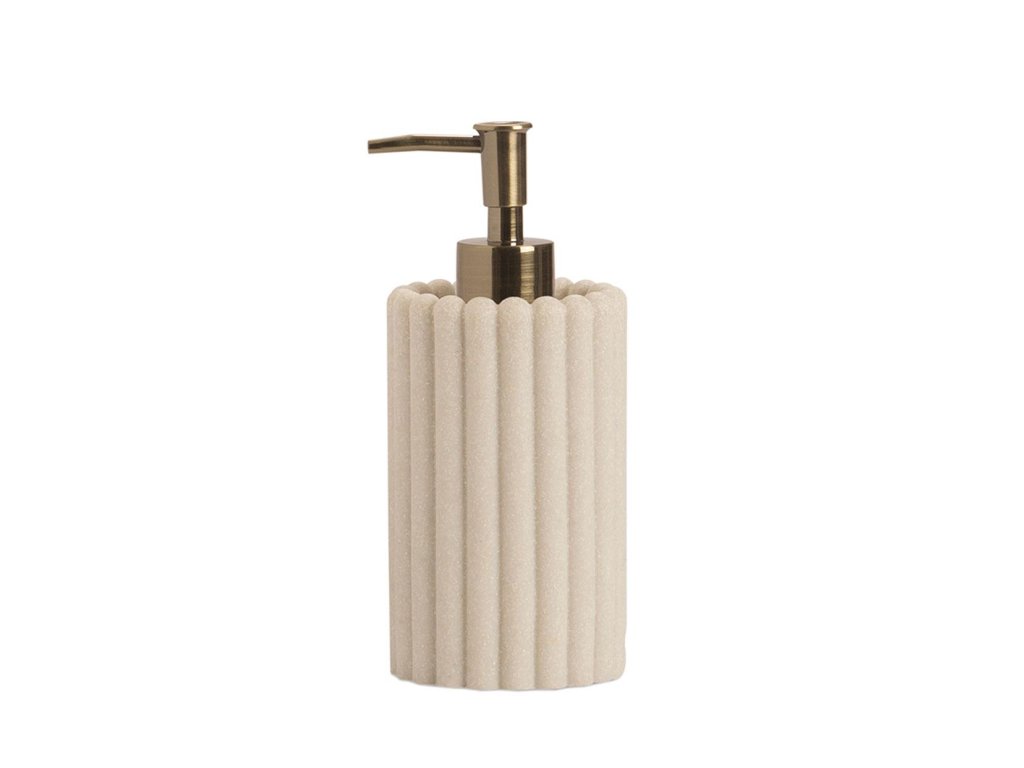 Vkusně řešený dávkovač na mýdlo v jemném krémovém odstínu s plastickým rýhováním se stane výrazným detailem vaší koupelny. Jeho čisté linie, decentní textura a zlatá pumpička vytvářejí moderní, příjemně působící kombinaci, která se hodí do klasického i současného interiéru.