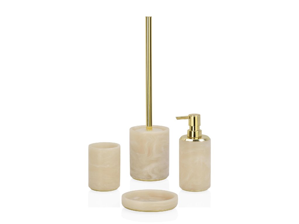 WC štětka Cloudy Gold tvoří dokonalý set s dalšími koupelnovými doplňky ze stejné kolekce – dávkovačem mýdla, kelímkem na kartáčky a mýdlenkou. Společně vytvářejí harmonický celek, který dodá vaší koupelně elegantní, sladěný a moderní vzhled.