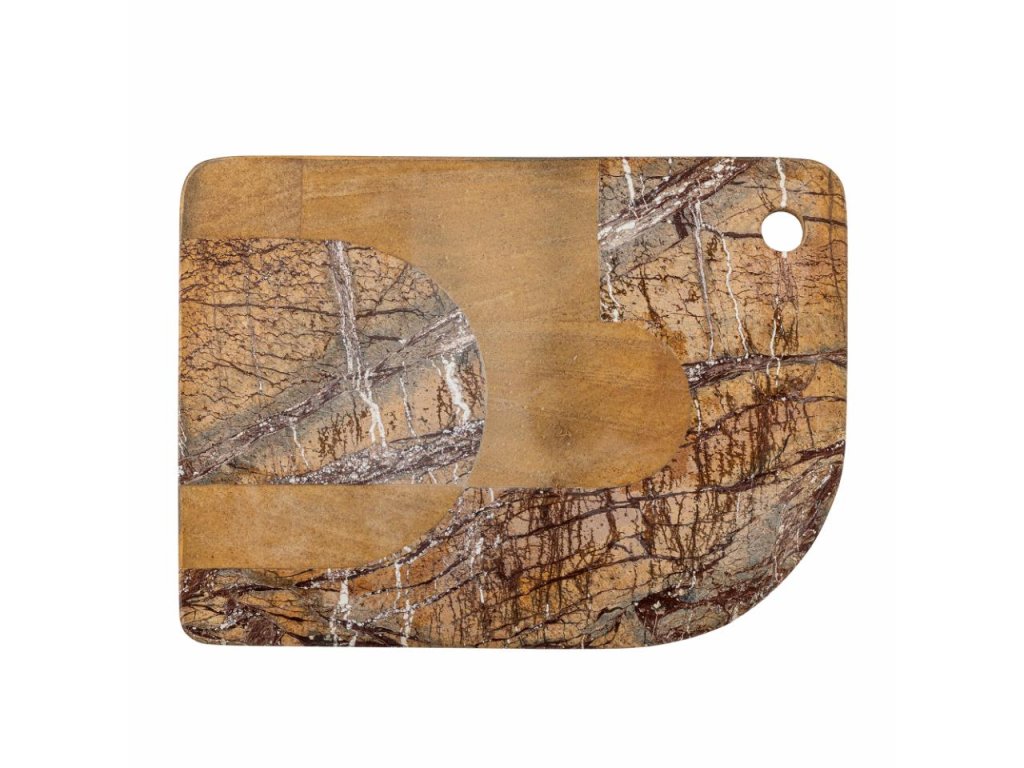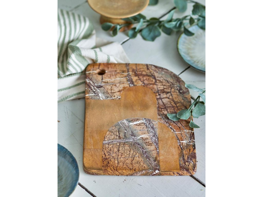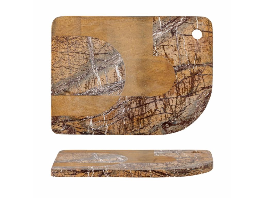 Servírovací prkénko Abrianna je důkazem toho, že i praktické kuchyňské vybavení může být současně krásným designovým prvkem. Vyrobené z kombinace mramoru a pískovce s jemně leštěným povrchem zaujme na první pohled svým originálním vzhledem. Každý kus je naprostý unikát – přírodní materiály vždy vytvářejí drobné odlišnosti v barvě i struktuře, a proto je každé prkénko jedinečné jako umělecké dílo.