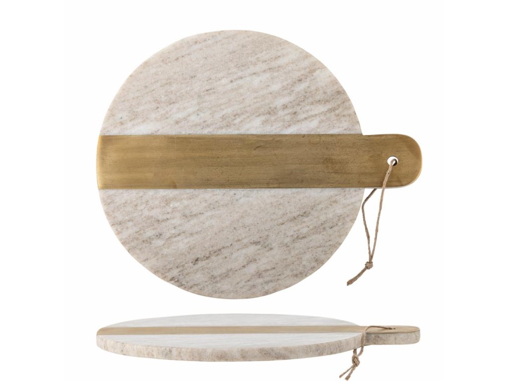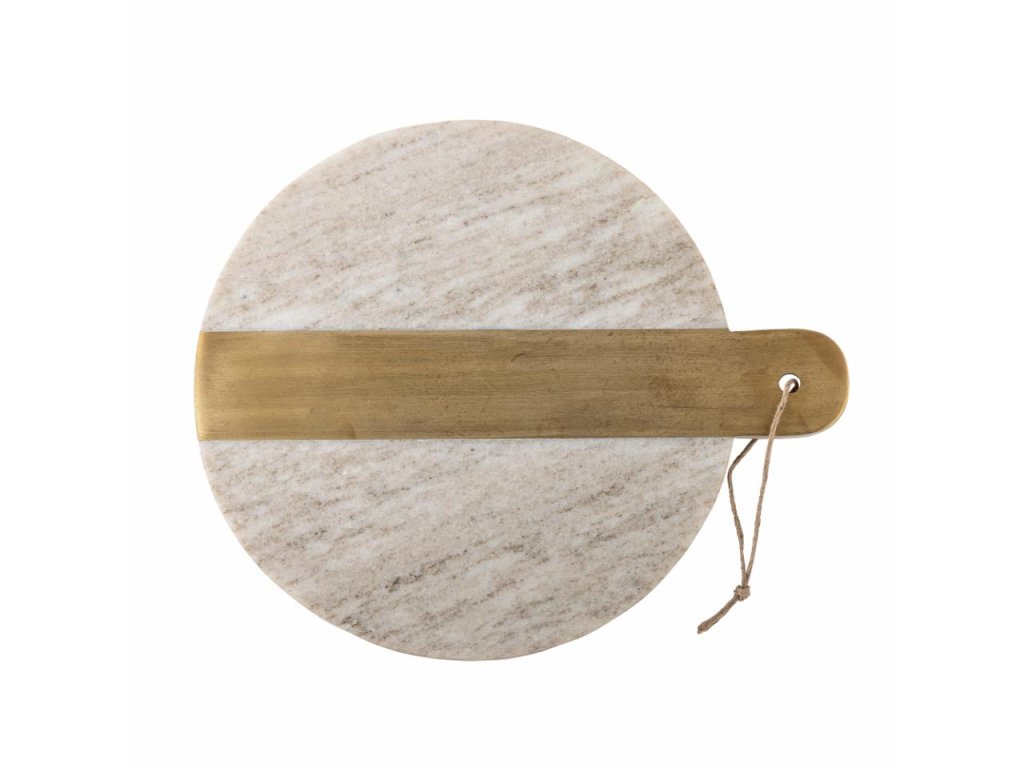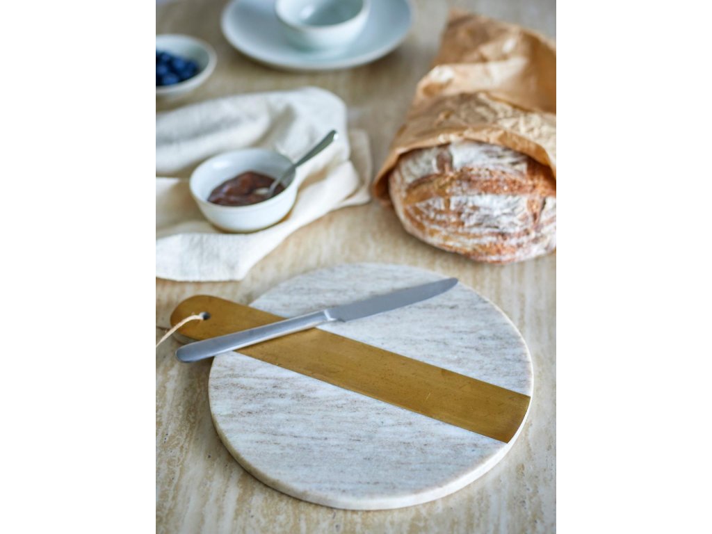 Servírovací prkénko Villette od Bloomingville je nádherným spojením přírodního mramoru a ušlechtilé mosazi. Tento kousek zaujme na první pohled svým kulatým tvarem a výrazným mosazným pruhem, který dodává celému designu luxusní a originální charakter. Každé prkénko je díky přírodní kresbě kamene naprostým originálem, žádné dva kusy nejsou stejné.