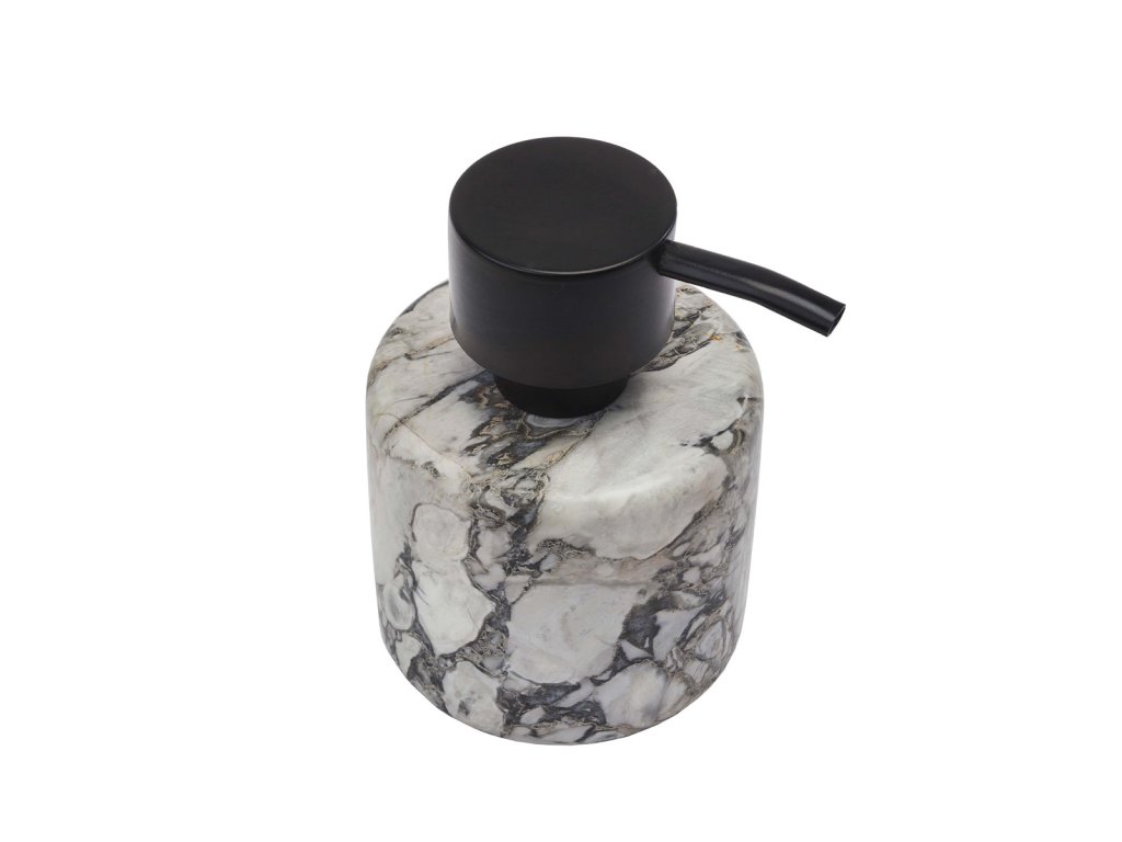 Dávkovač mýdla z kolekce Nero je ztělesněním elegance a minimalismu v koupelnovém designu. Jeho tělo tvoří masivní černý kámen s jemným mramorováním, který v kombinaci s matnou nerezovou ocelí vytváří dojem klidné síly a přirozené noblesy. Precizně zpracovaný povrch každého kusu je výsledkem ruční práce, díky níž se každý dávkovač stává jedinečným designovým objektem.