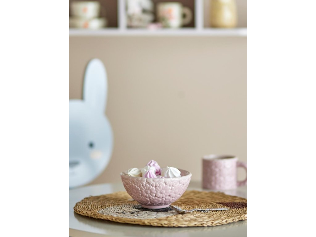 Miska Benji od Bloomingville MINI potěší všechny malé strávníky i dospělé, kteří mají slabost pro něžný a hravý design. Je vyrobena z kvalitního kameninového materiálu a zdobena jemným reliéfem květů sedmikrásky, které vytvářejí nádherný, hmatově příjemný povrch. Jemný růžový odstín dodává misce sladký, útulný vzhled a okamžitě rozzáří každý dětský stůl.