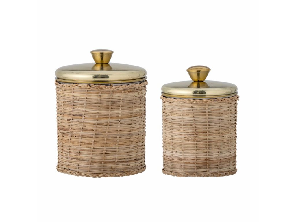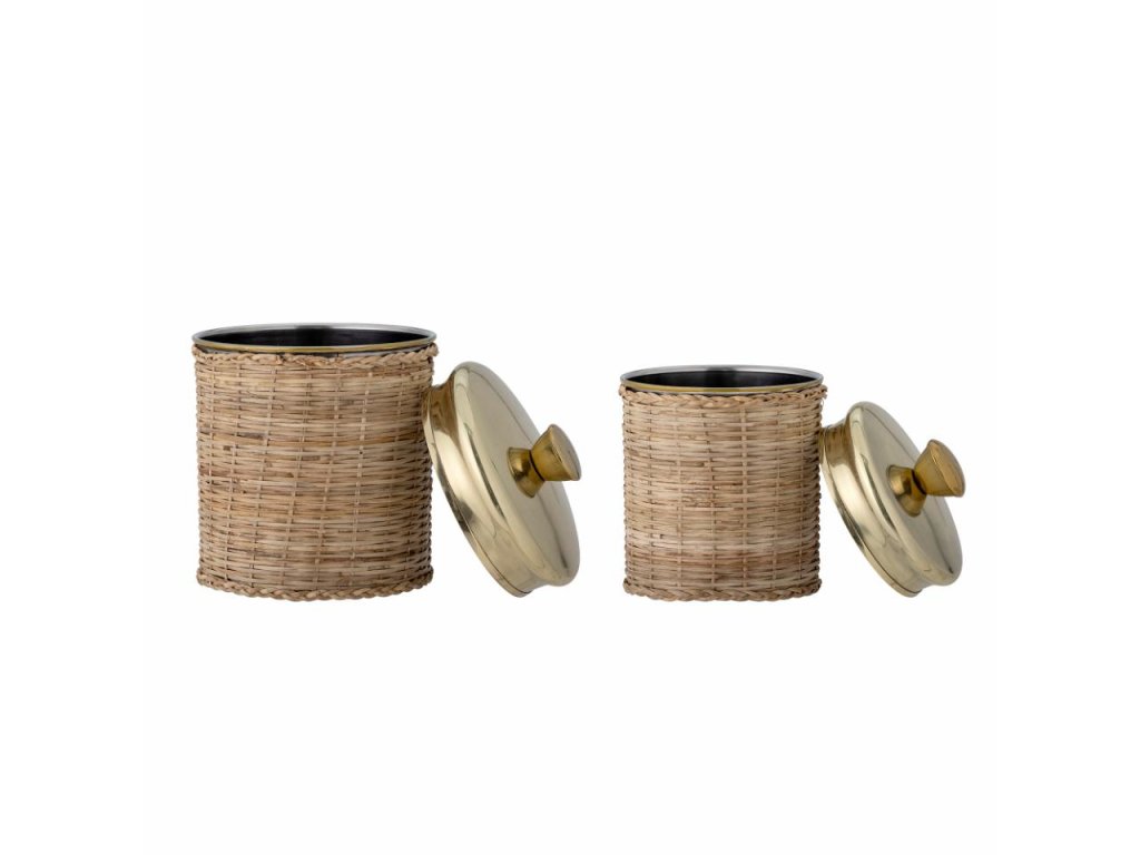 Dodejte svému domovu nádech přírodní elegance s tímto nádherným setem dóz Abas. Kombinace ručně tkaného ratanu a luxusního lesklého víčka z nerezové oceli v mosazném odstínu přináší nejen praktické využití, ale i estetický zážitek. Každá dóza má unikátní strukturu ratanu, což z ní činí výjimečný a dekorativní prvek.