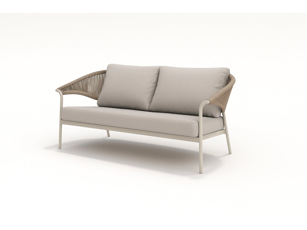 Luxusní zahradní set Tonga tvoří dvoumístná pohovka a 2 křesla, vyrobené z hliníku ve světlém provedení, která je pokryta sedacími odnímatelnými polštářky, včetně opěrných polštářů, z béžového Olefinu, hitech materiálu odolného vůči UV záření a klimatickým jevům. Na bočních stranách mají stylové kovové područky, v nichž jsou natažena krásná textilní lanka v hnědé barvě. Pohovku a křesla doplňuje konferenční stolek v provedení bílého hliníku, deska stolu je vyrobena z umělého kamene, který v sobě snoubí krásou pravého kamene, avšak bez jeho křehkých vlastností. Umělý kámen je tak ideální kombinací pro zahradní sestavy, vystavené náročným podmínkám. Díky materiálu hliníku jsou odolné a lehké na manipulaci.