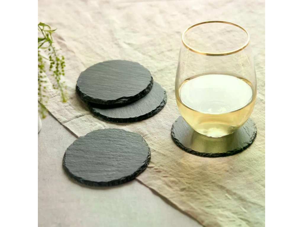 SET 4 KULATÝCH PODTÁCKŮ Z BŘIDLICE – PŘÍRODNÍ CHARAKTER A ODOLNÁ OCHRANA STOLU