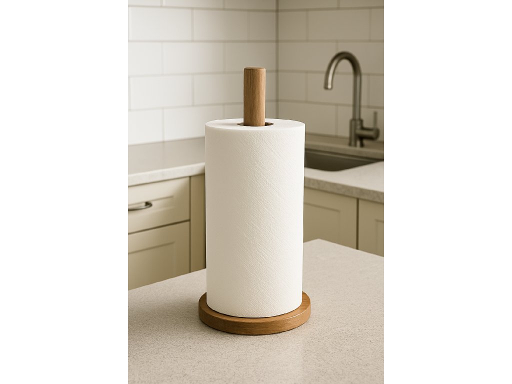 Stabilní dřevěná základna udrží stojan pevně na místě i při rychlém odtrhávání utěrek. Hladký povrch se snadno udržuje a jeho minimalistické provedení nechává vyniknout přirozenou texturu dřeva.