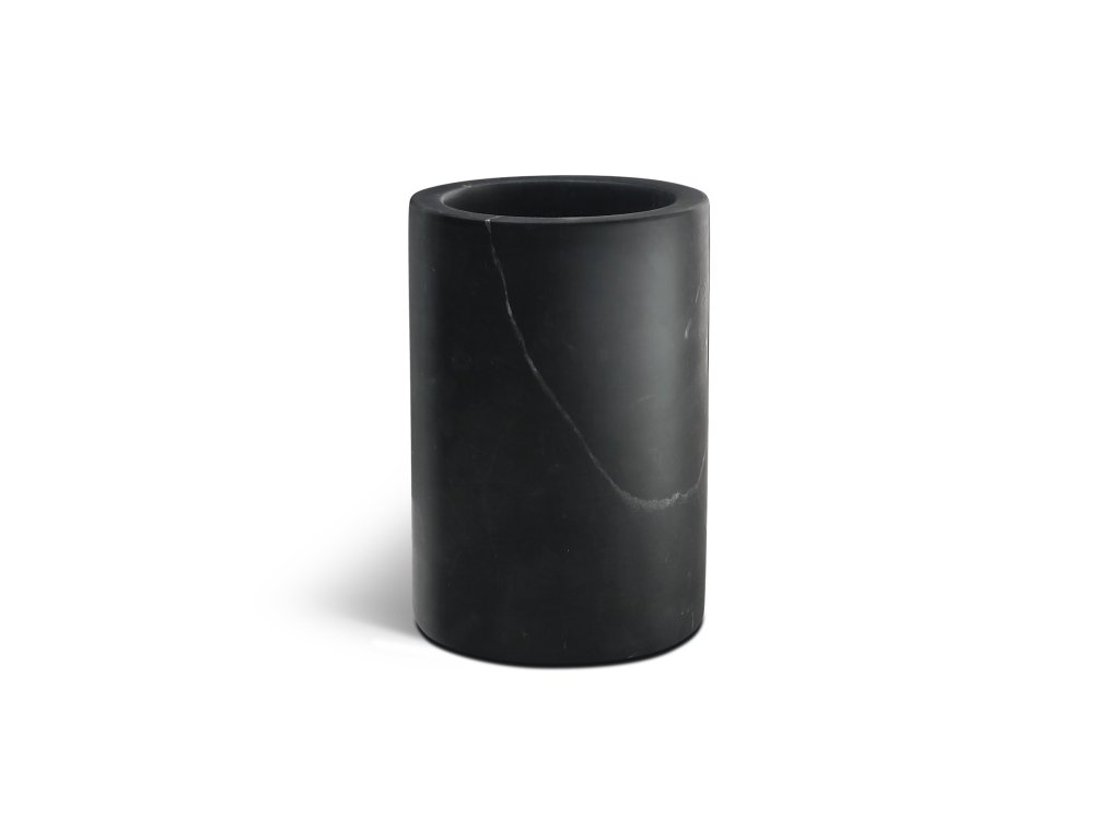 Kulatý stojan na kartáčky Obsidian Black je výrazným a nadčasovým doplňkem, který vdechne koupelně luxusní atmosféru. Je vyroben z hluboce černého mramoru s jemnými přírodními žilkami, které dodávají kameni hloubku a charakter. Matný povrch působí elegantně, moderně a zároveň je praktický – lépe odolává otiskům i stopám vody.