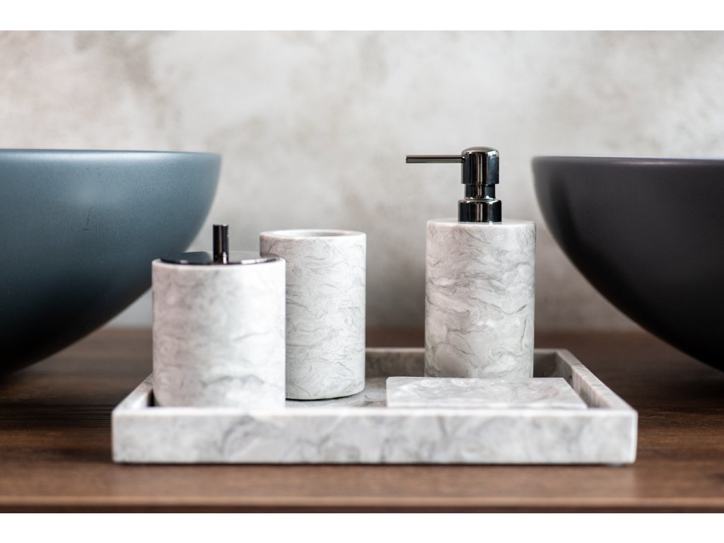 Skvěle ladí s dalšími doplňky z kolekce Pearl Grey – dávkovačem mýdla, mýdlenkou či podnosem ve stejném odstínu. Perfektně se kombinuje s chromovými, černými nebo bílými armaturami. Výborně doplňuje přírodní materiály jako světlý dub, bříza či beton, které podtrhnou jeho moderní a čistý charakter. V minimalistických i skandinávských koupelnách působí naprosto přirozeně a nadčasově.