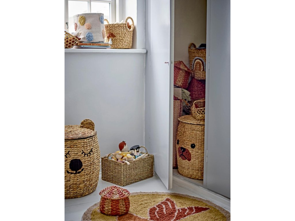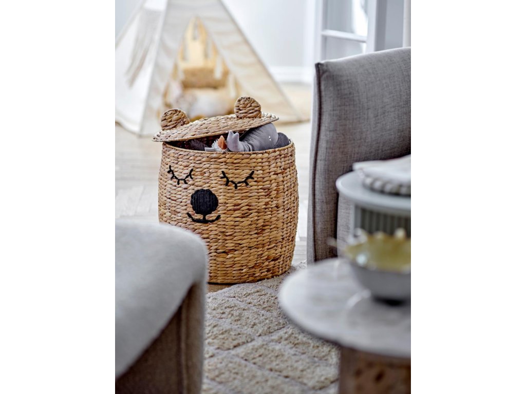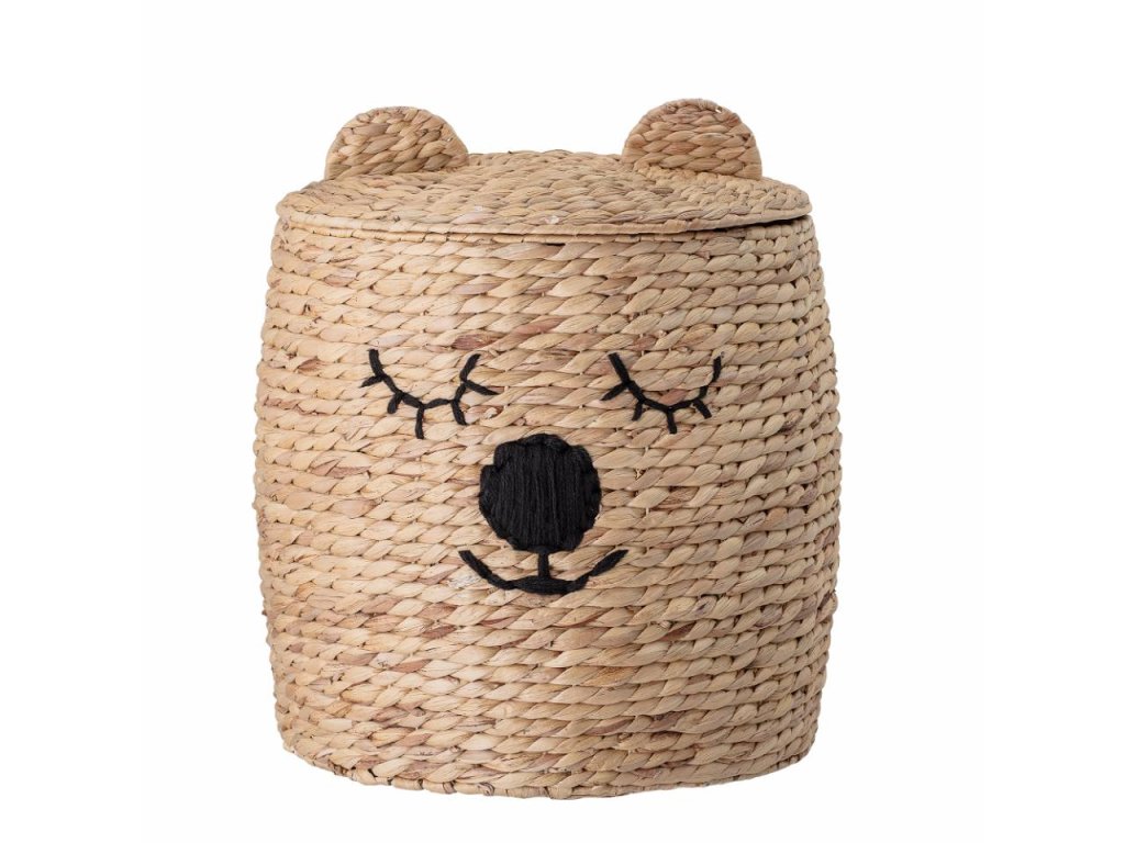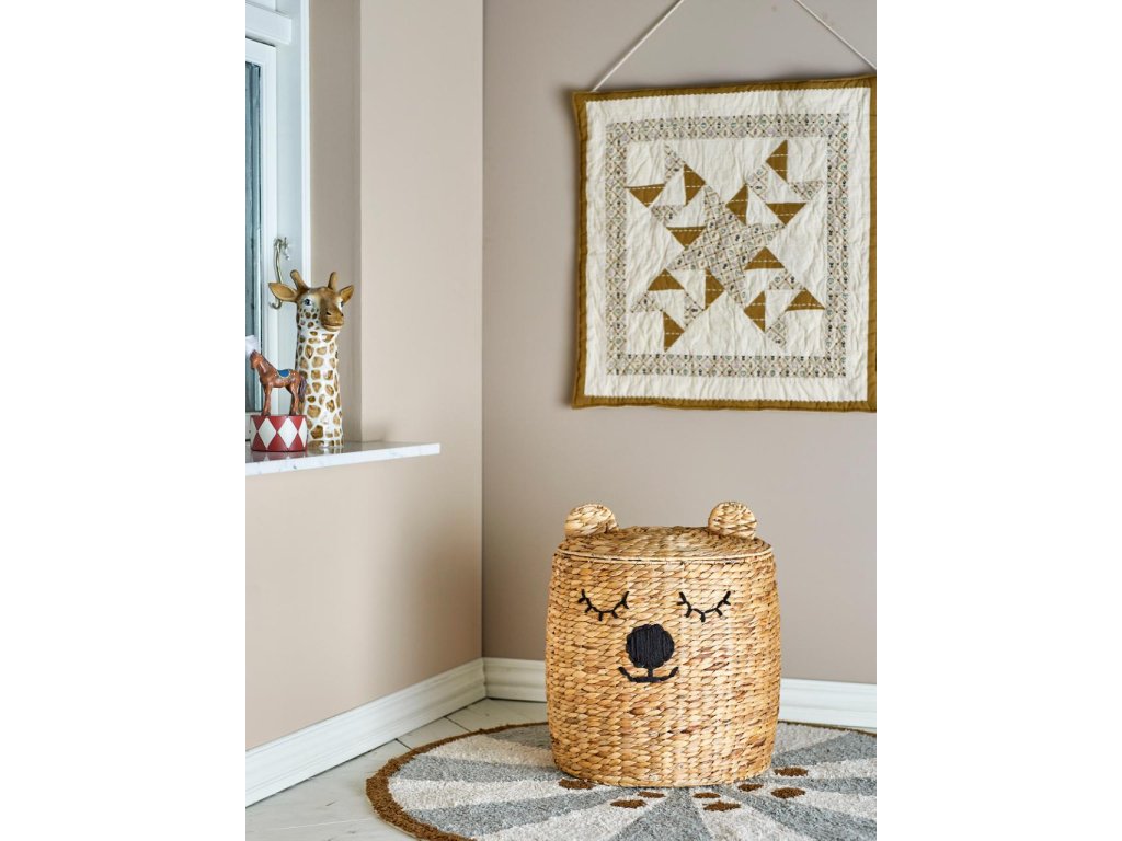 Úložný koš Dolma od Bloomingville MINI je kouzelný prvek, který propojuje praktické využití s hravým designem. Na první pohled zaujme svým roztomilým vzhledem – přední strana je ozdobena výšivkou spícího medvídka, zatímco víko s malými oušky působí jako jeho hlava. Tento nápaditý detail promění uklízení z povinnosti na zábavu a dětem pomůže vytvořit si pozitivní vztah k pořádku.