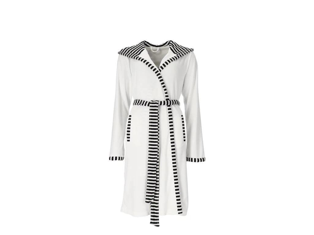 Juno je atraktivní dámský župan s kapucí s moderním pruhovaným designem, integrovanými kapsami a je k dispozici v řadě jasných barev. Jedná se o lehký župan a velmi příjemně se nosí..