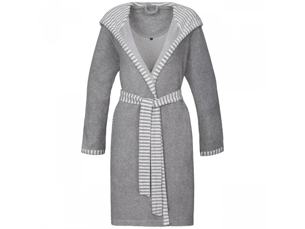 Juno je atraktivní dámský župan s kapucí s moderním pruhovaným designem, integrovanými kapsami a je k dispozici v řadě jasných barev. Jedná se o lehký župan a velmi příjemně se nosí..