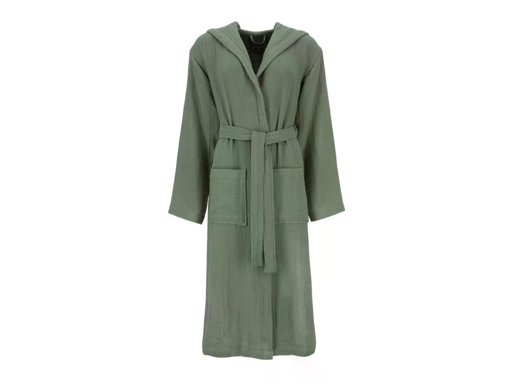 MUŠELÍNOVÝ ŽUPAN S KAPUCÍ SILENT - LEHKÝ UNISEX WELLNESSŽUPAN V ODSTÍNU DETOX GREEN