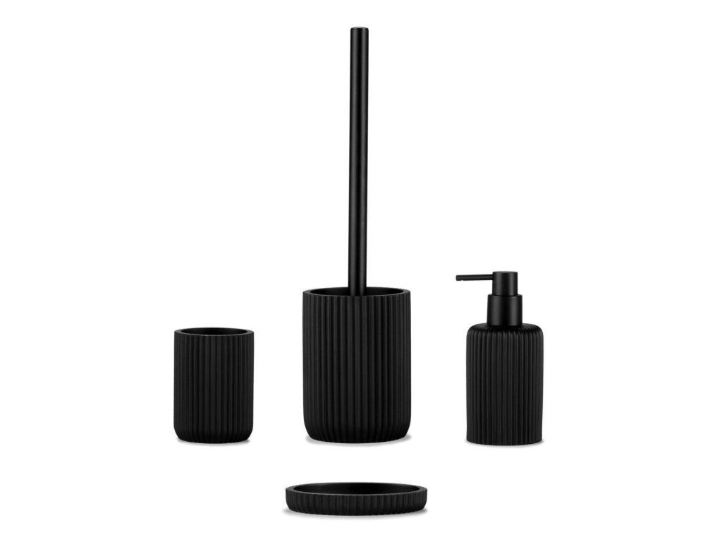 Minimalistický válcový tvar působí vyváženě a sofistikovaně, zatímco povrch z vysoce odolného polyresinu zajišťuje nejen dlouhou životnost, ale i snadnou údržbu. Černá kartáčová rukojeť i diskrétní víko dokonale ladí s tělem soupravy a podtrhují její monolitický charakter. Ribbed představuje ideální řešení pro ty, kteří hledají nadčasový doplněk s důrazem na detaily.