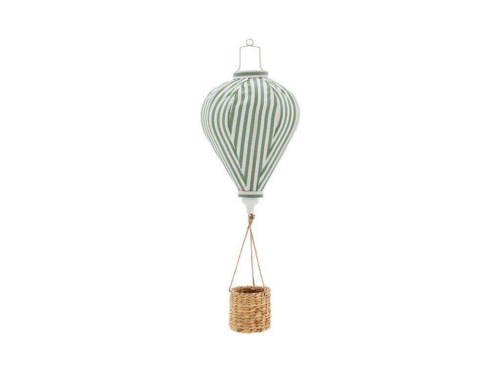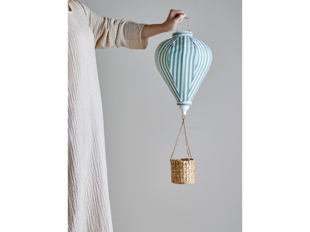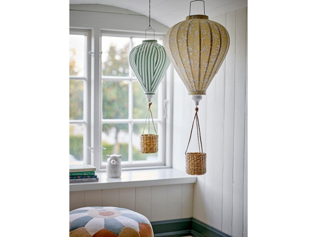 Závěsná dekorace Letící balón od Bloomingville MINI vnese do dětského pokojíčku jemnou poetiku dobrodružství. Lehký horkovzdušný balón se elegantně pohupuje ve vzduchu a probouzí v dětech fantazii, jako by se každou chvíli mohl vznést na cestu nad mraky. Jeho jemné zelené pruhy v kombinaci s přírodním proutěným košíkem vytvářejí okouzlující vzhled, který krásně zapadne do každého dětského interiéru.